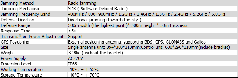 มาตรการรับมือโดรนที่ใช้ระบบ SDR ป้องกันโดรนเพดานการบินต่ำ ระบบการรบกวนสัญญาณในแนวตั้ง อันเป็นเอกลักษณ์ของอุปกรณ์รุ่น AT610 เพื่อสร้าง “กำแพงป้องกันอิเล็กทรอนิกส์” เพื่อสกัดกั้นโดรน ขณะที่เครือข่ายหลายหน่วยช่วยให้สามารถป้องกันพื้นที่โดยรอบได้อย่างแม่นยำ โซนการรบกวนสัญญาณที่ออกแบบเป็นโพรงช่วยหลีกเลี่ยงการรบกวนการสื่อสารภาคพื้นดิน และแก้ไขปัญหาทางสาธารณะจากการรบกวนสัญญาณแบบรอบทิศทาง